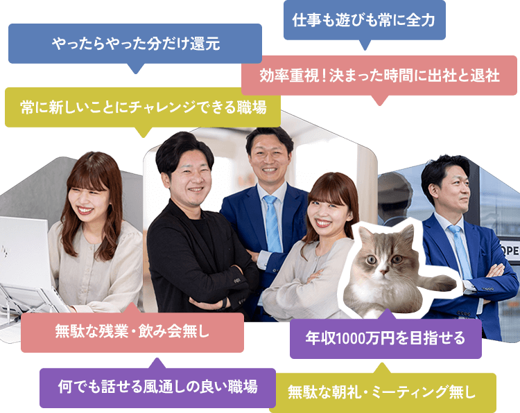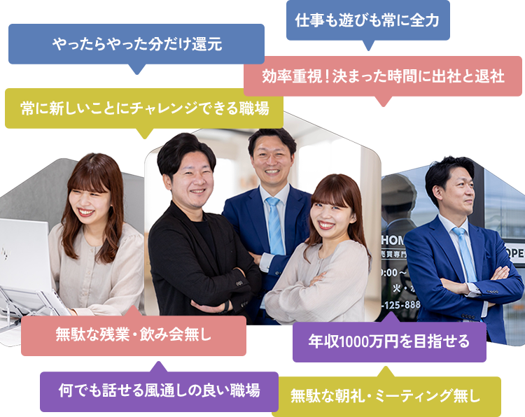 不動産業界はブラック企業が多いと言われていますが当社は違います。しっかり働きしっかり休む、メリハリがある会社です。